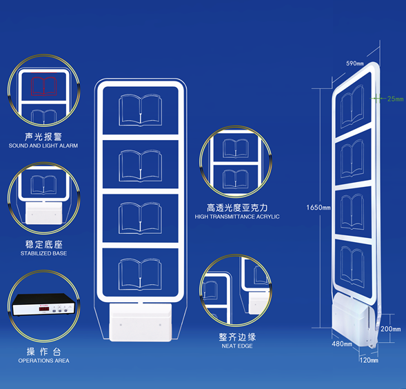 EM8200圖書防盜儀采用進口亞克力燈籠設計、耐磨性強、晶瑩透頂,支持標簽的三維方向讀取,可選配進出客流統計、定制燈光與報警顏色、攝像頭聯動實現報警抓拍、與門禁聯動報警關門等功能。